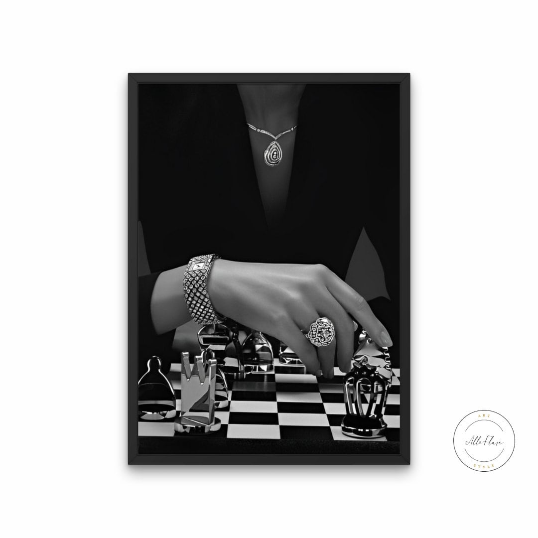 Discover the epitome of elegance with AlloFlare’s Black & White Luxury Fashion Chess Poster, a masterpiece that embodies the fusion of high fashion and intellectual prowess. Transform your interior with a statement piece that not only elevates your decor but also serves as an emblem of success and luxury aesthetic.