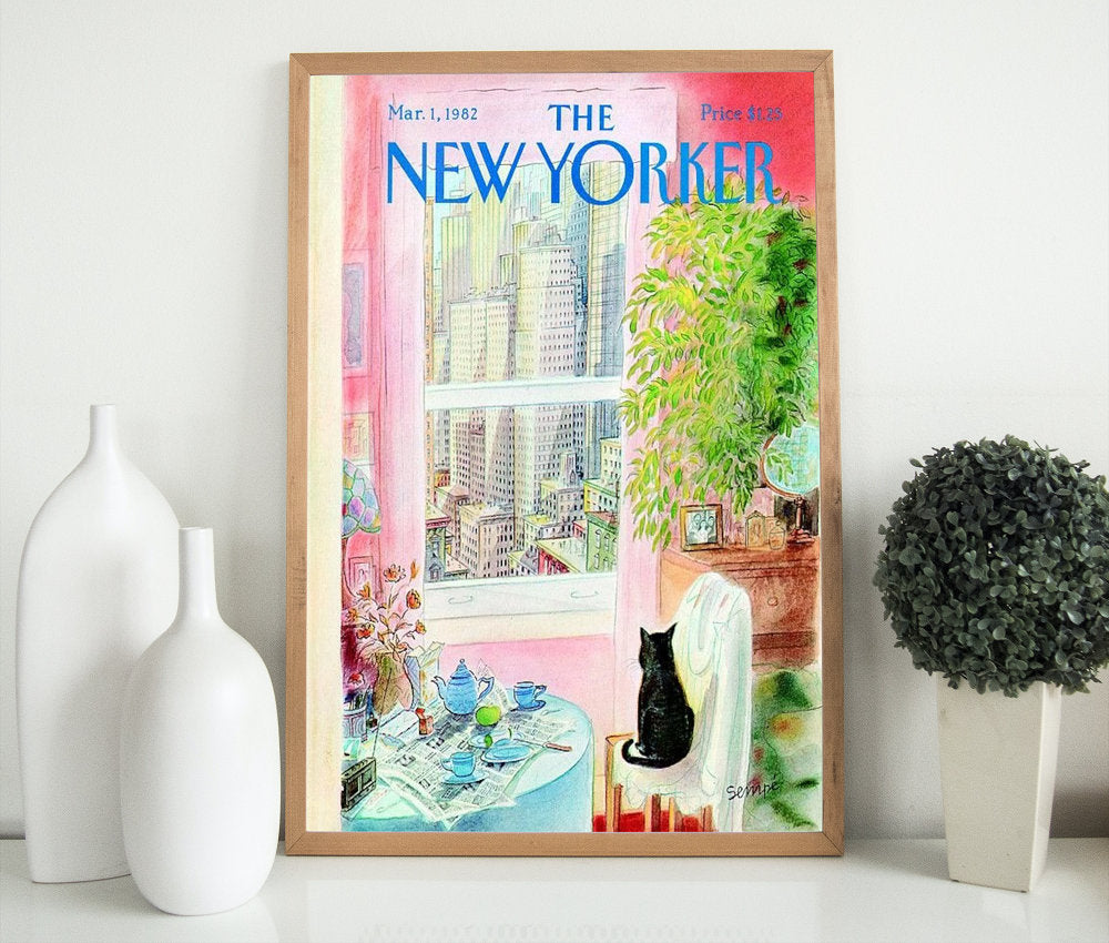 Step back in time with our Cat Starring at Window The New Yorker Vintage Cover March 1982 printable art. Inspired by the iconic March 1982 edition of The New Yorker magazine, this vintage cover print features a charming illustration of a cat gazing out of a window, capturing a moment of quiet contemplation.