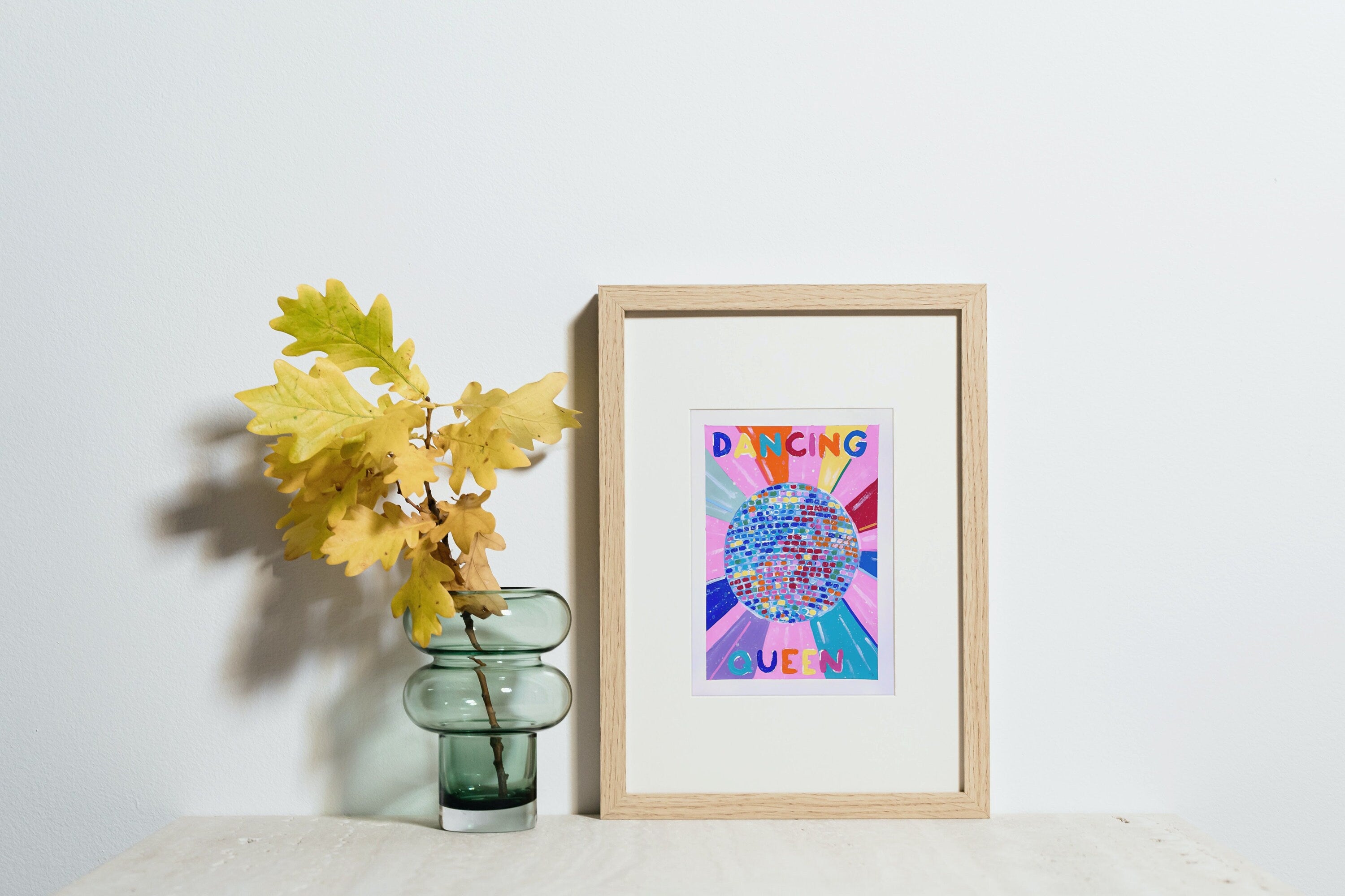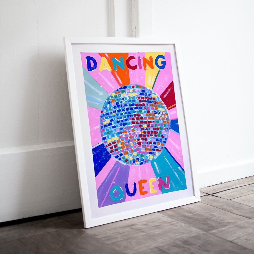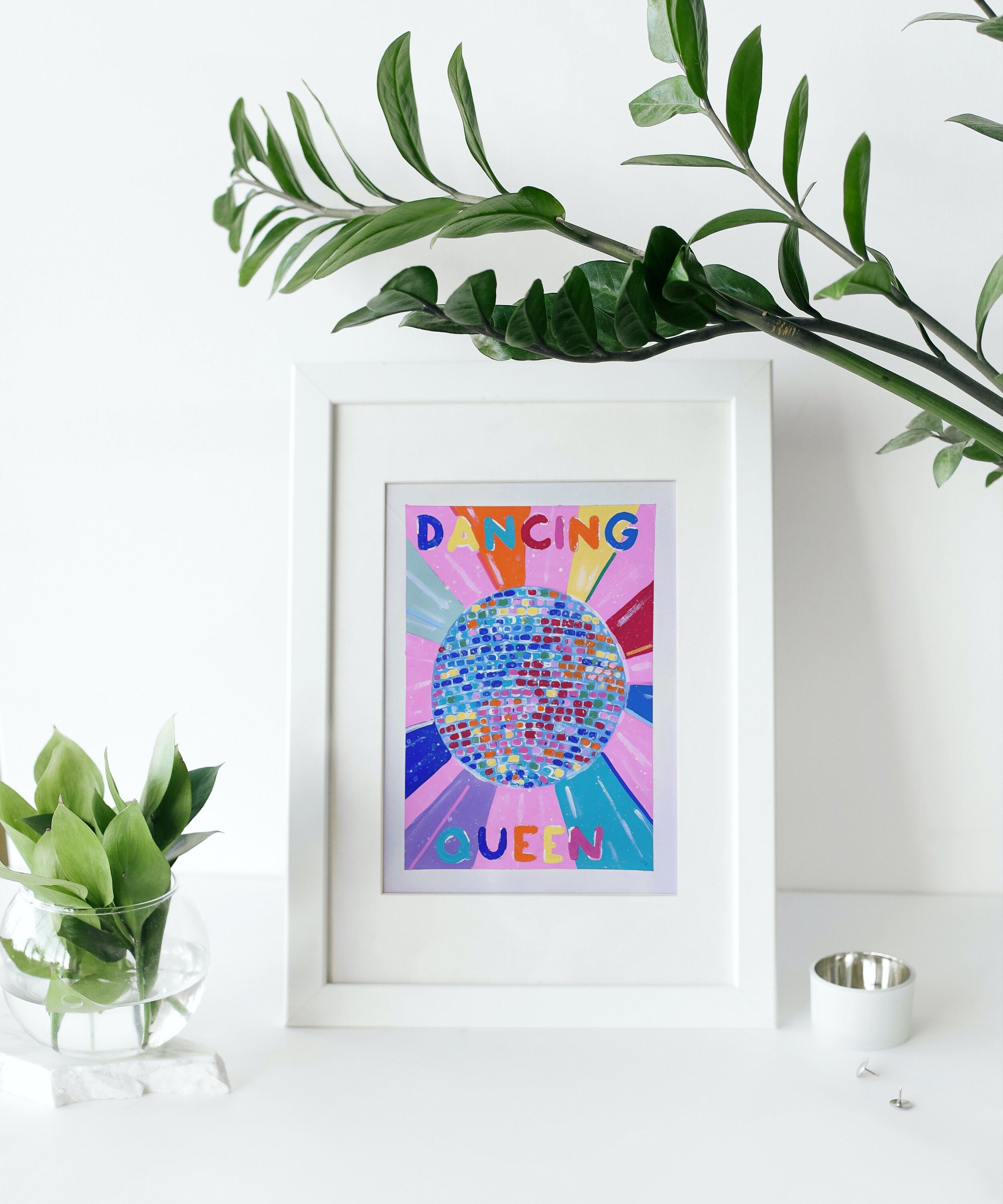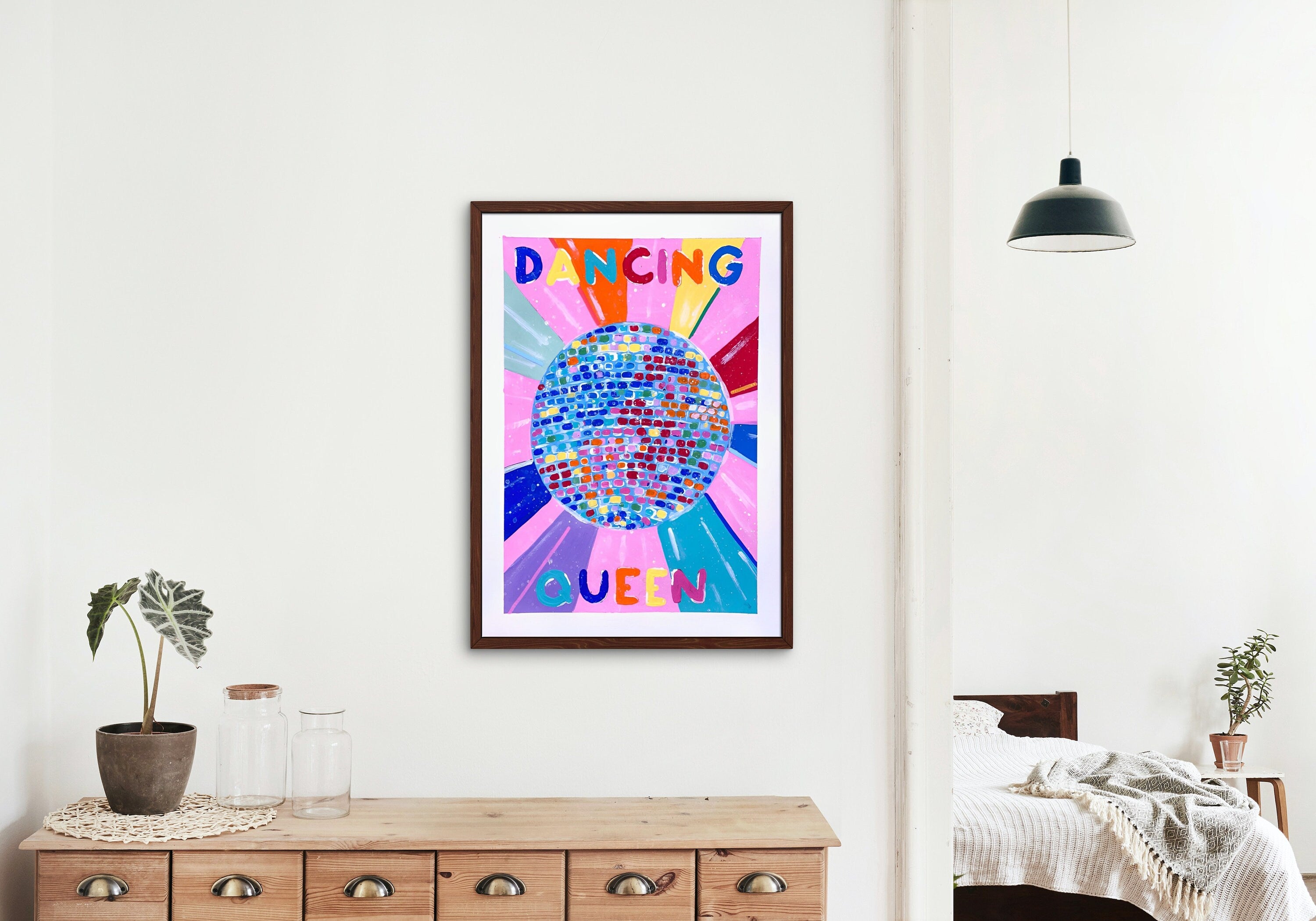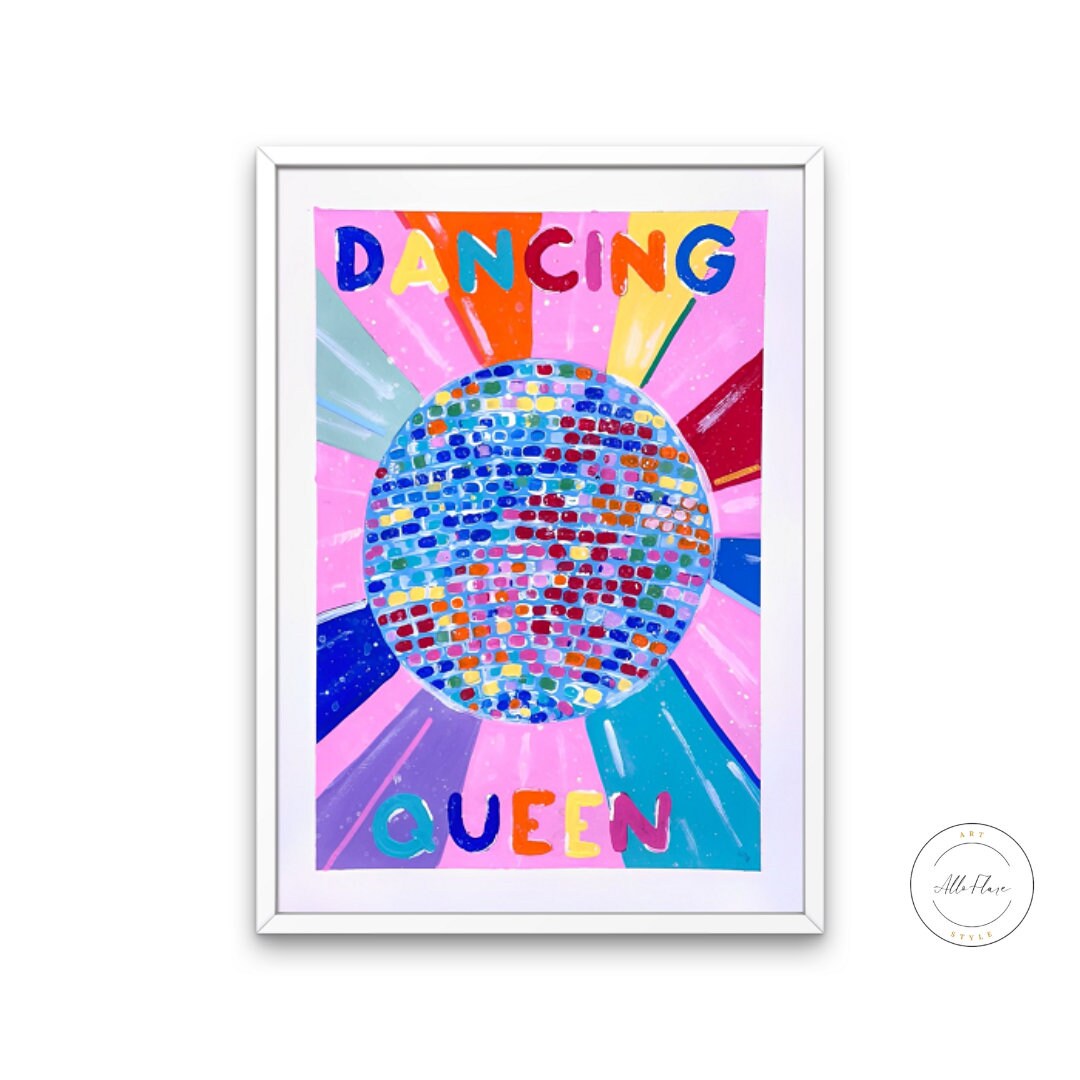 Turn your space into a vibrant dance floor with our Dancing Queen Art Print. This colorful preppy room decor is perfect for adding a lively touch to your college dorm.
