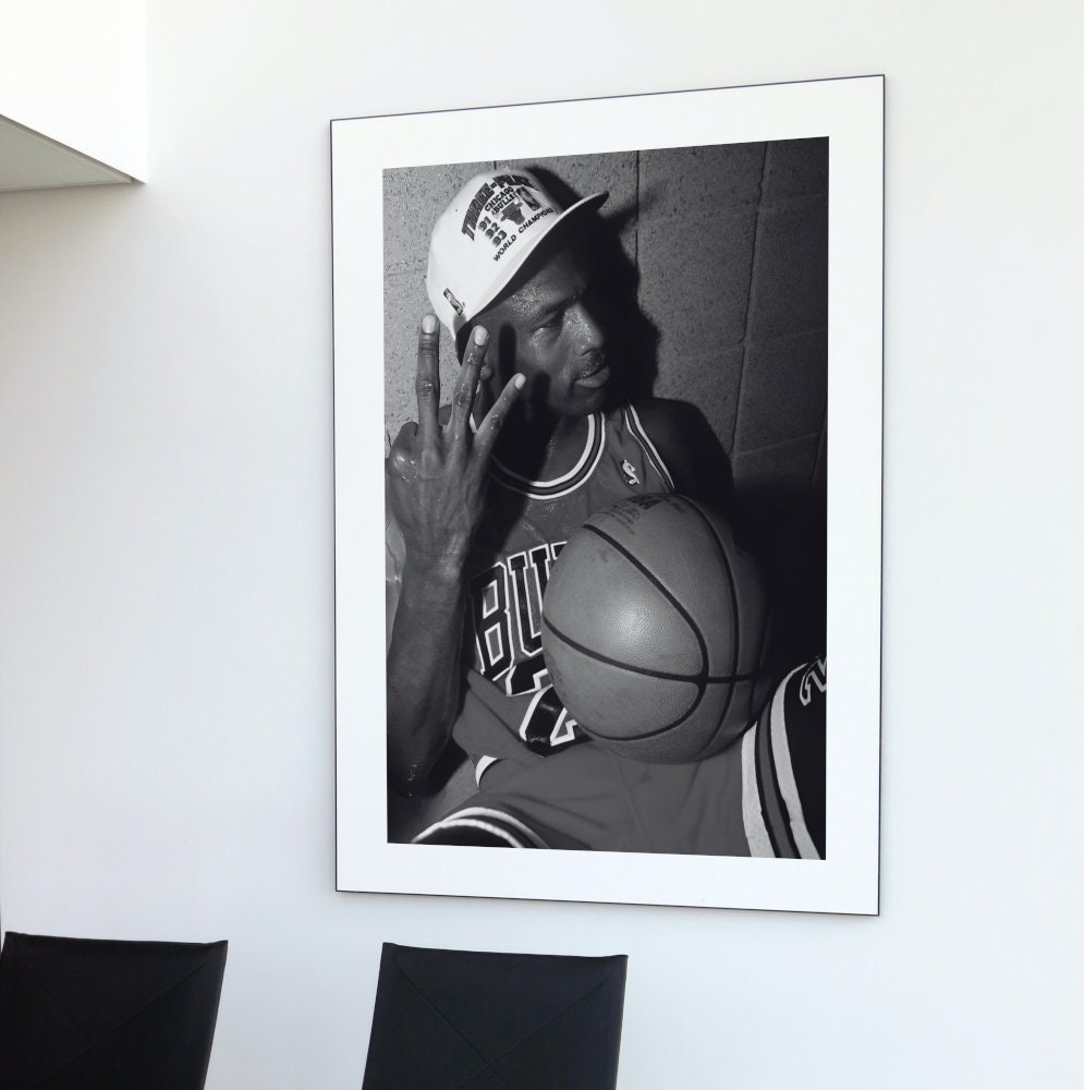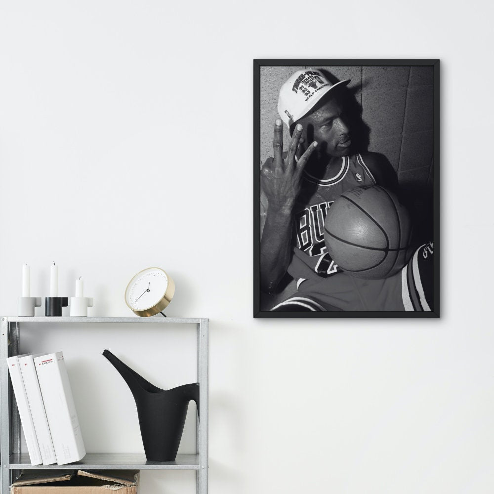 Celebrate the legacy of the legendary Michael Jordan with our “Jordan 3 Fingers” black and white basketball poster.