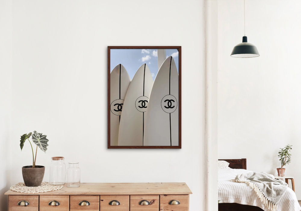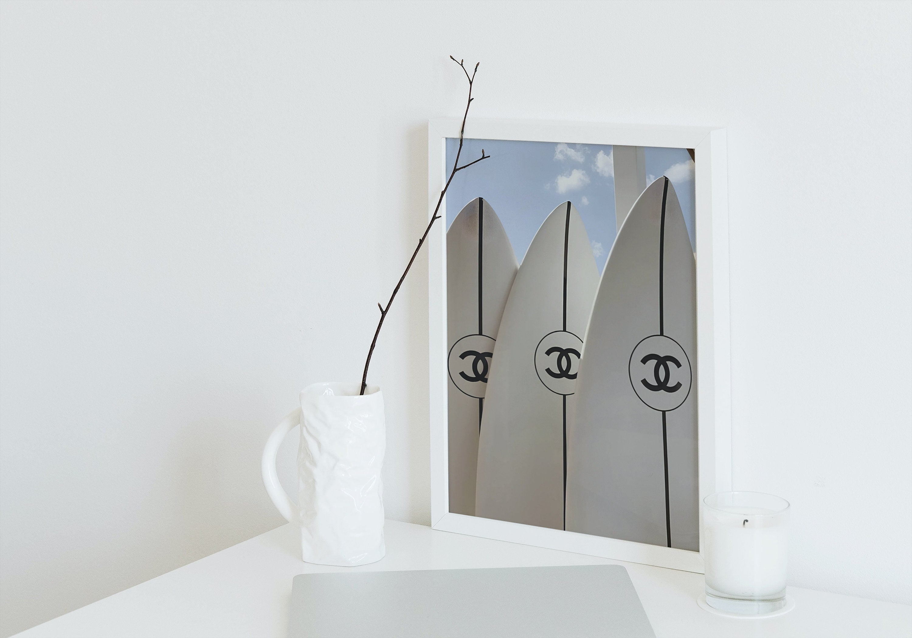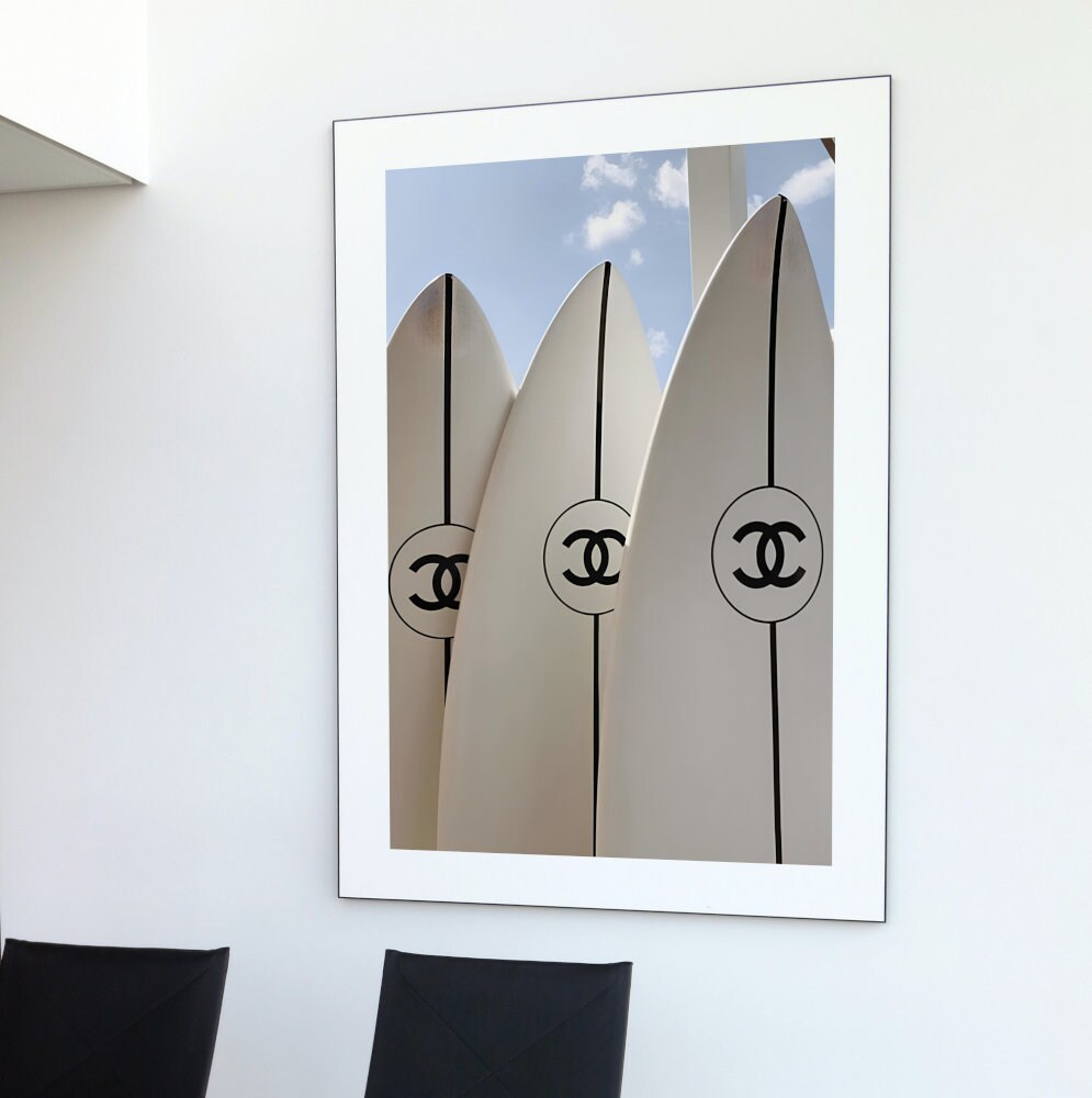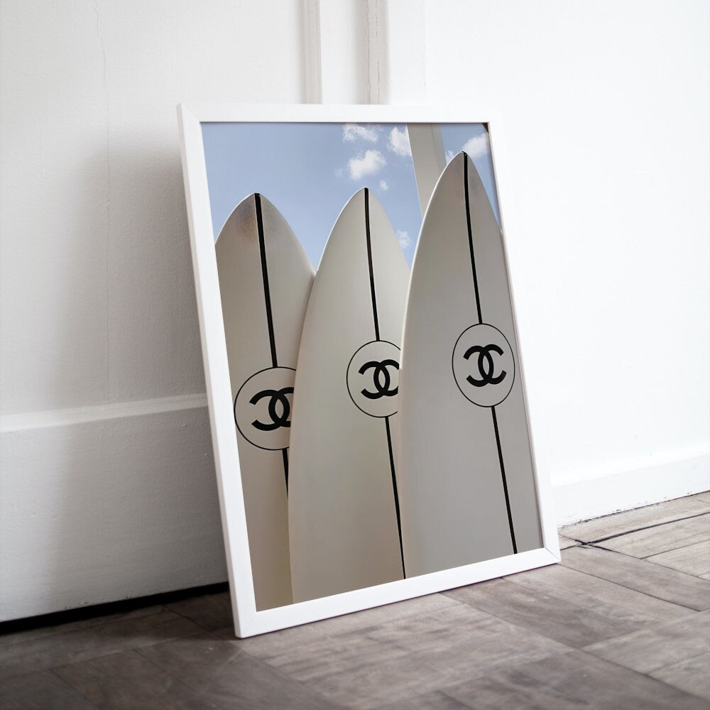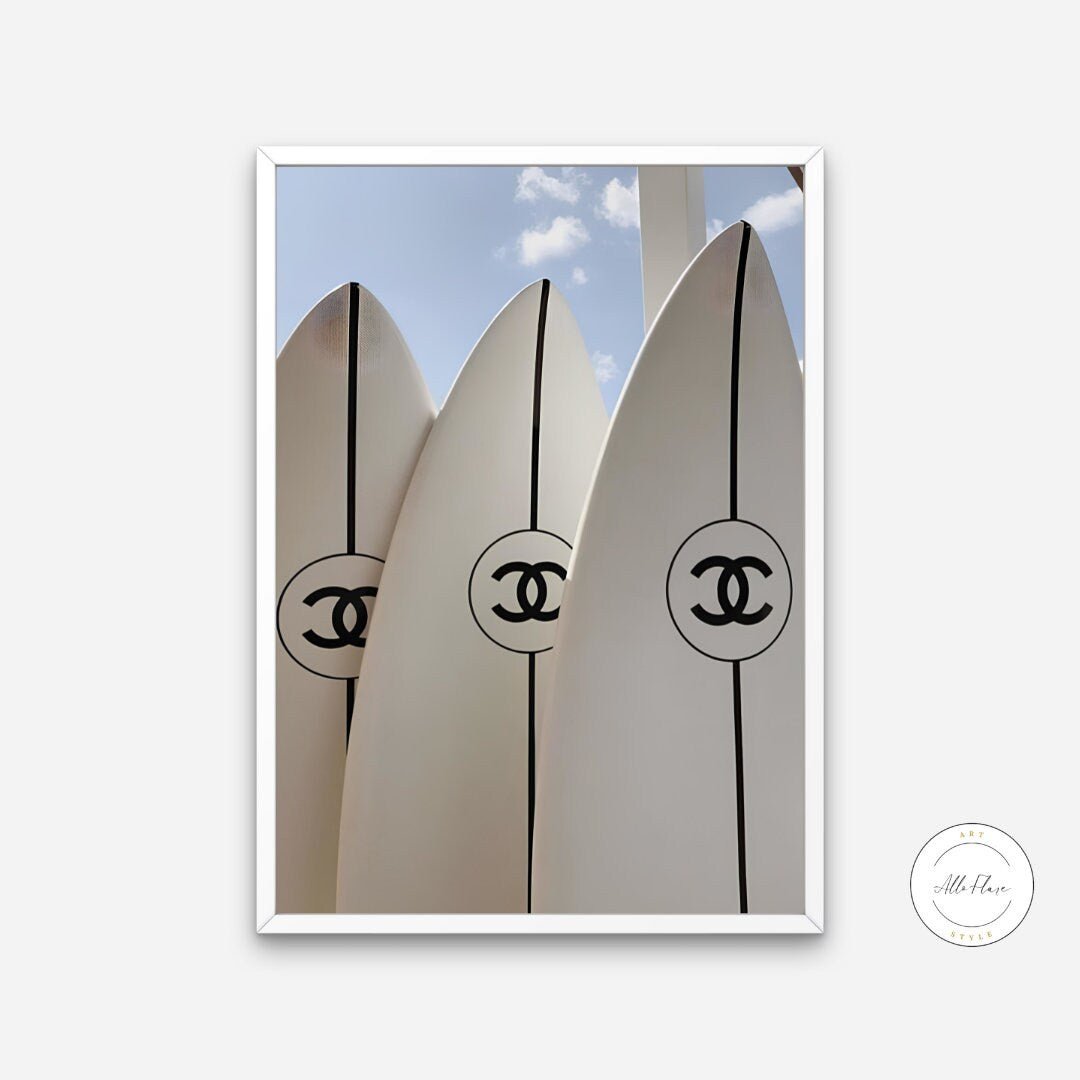 Luxury Surfboard Print PRINTABLE WALL ART, Designer Fashion Poster, High Fashion Wall Art, Surfboard Decor, Surfer Poster, Neutral Wall Art