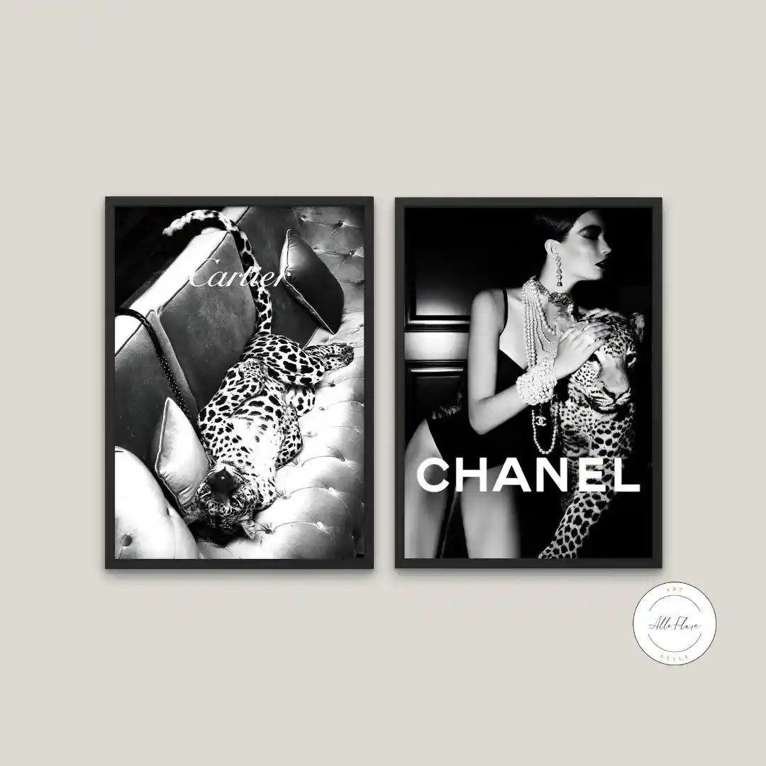 Transform your space into a realm of sophistication with our Set of 2 Leopard Luxury Fashion Black & White Wall Art INSTANT DOWNLOAD Art Prints.