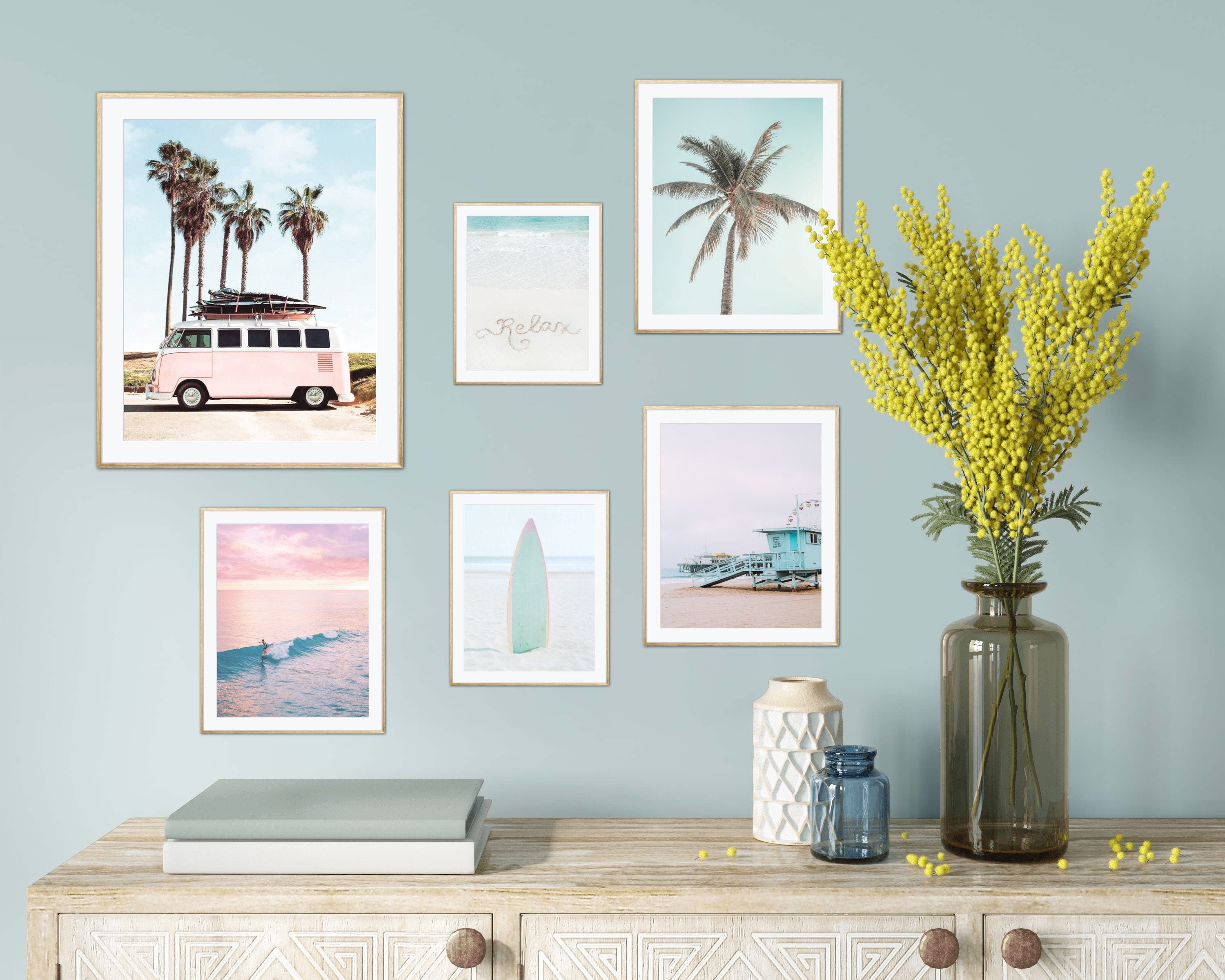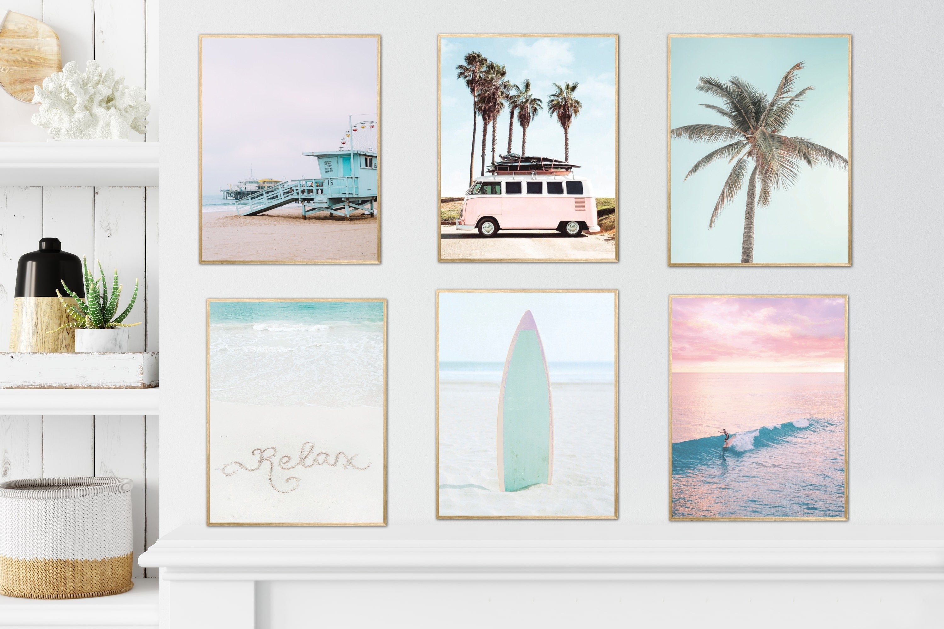 Transform your space into a coastal haven with our Surfer Room Décor Set of 6, available as digital prints. This set features pastel beach prints, coastal prints, palm prints, surfboard prints, and beach scene art to create a serene and beachy atmosphere. Elevate your walls with the calming beauty of coastal wall art that captures the essence of a day at the beach. Ideal for surfers and beach lovers, this set is a versatile addition to your collection. Download now for a stylish upgrade to your surfer room décor, bringing the serene vibes of the coast into your living space in a visually captivating way. Transform your home with this set of digital prints that radiates the relaxation and beauty of coastal living.