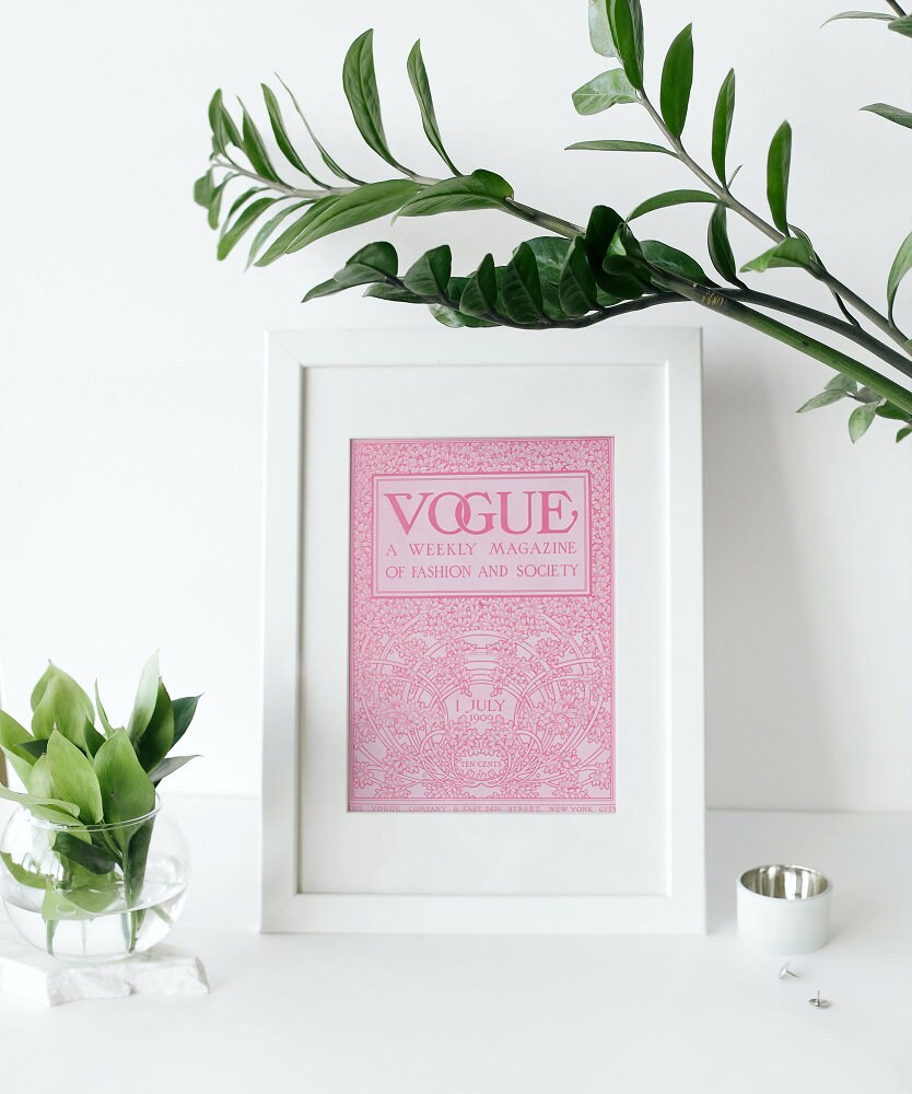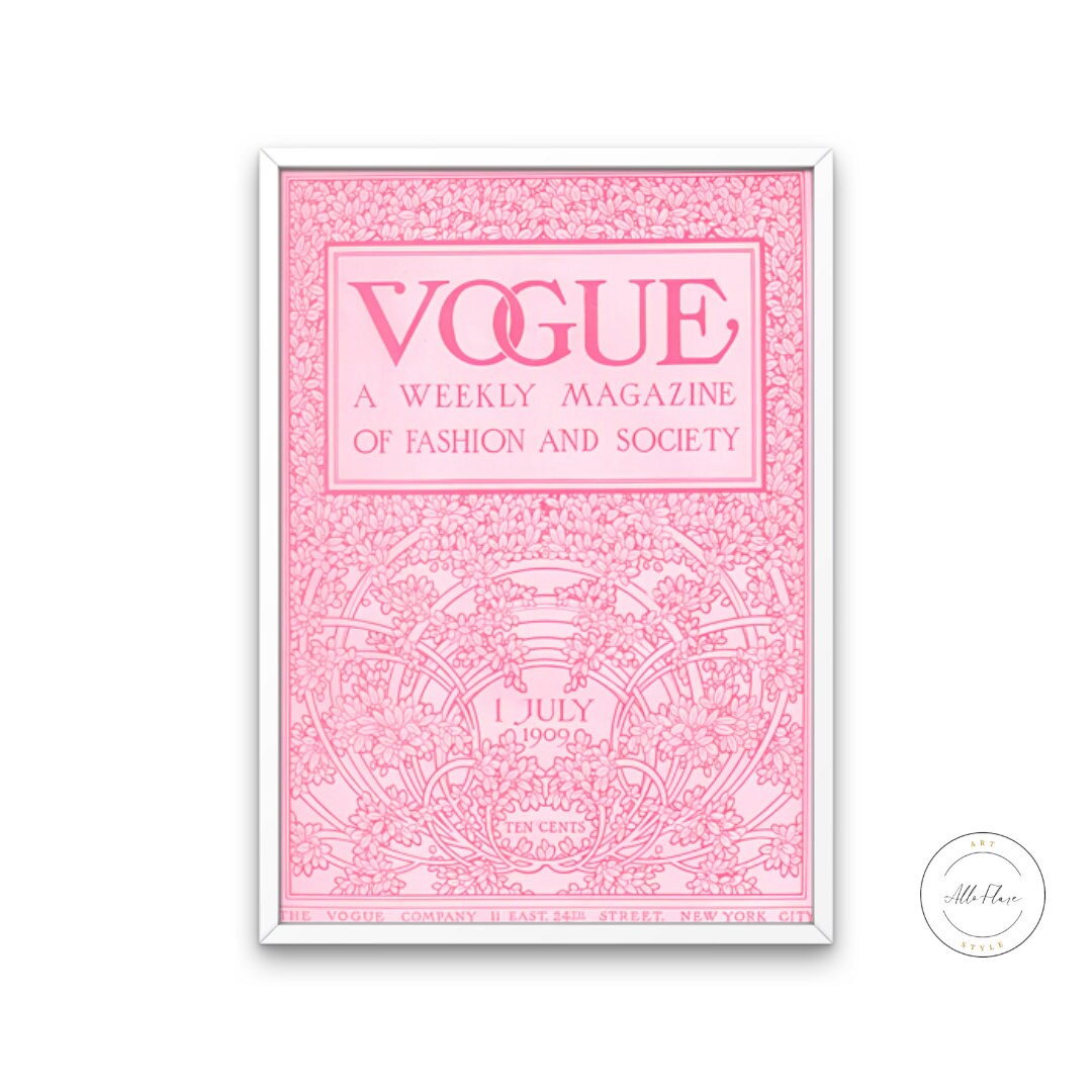 Vintage Vogue Fashion Poster PRINTABLE ART, Vintage Magazine Art Cover, Vogue Poster, Fashion Wall Art, Pink Wall Art
